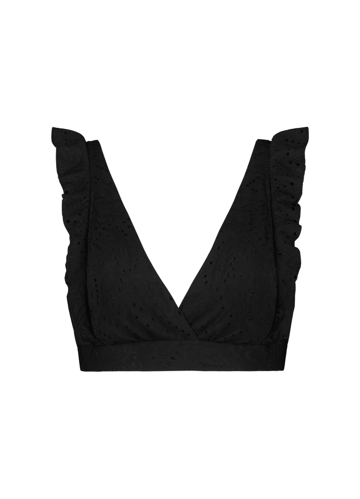 Artikelnummer 265127-966 Brandcode 65 Collectie Dames – Early Bird,Dames 2022 Kleur Zwart Maat 36B (70B),36D (70D),38B (75B),38D (75D),40B (80B),40D (80D),42B (85B),42D (85D) Materiaal 91% Polyester, 9% Elastaan Seizoen SS22 Serienaam Black Embroidery Soort top Lichte padding,Padding,Soft cup (niet voorgevormd),V-hals