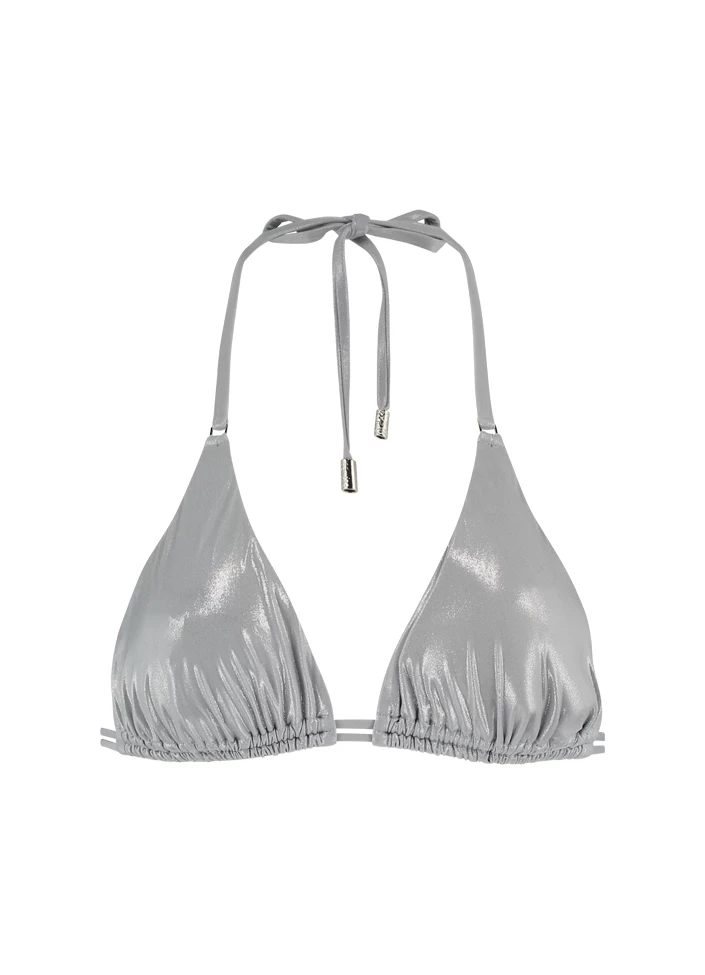 Artikelnummer 371119-866 Collectie Beachlife x Monica Geuze Kleur Zilver Maat 36B (70B),36D (70D),38B (75B),38D (75D),40B (80B),40D (80D),42B (85B),42D (85D) Materiaal 85% Polyamide, 15% Elastaan Seizoen SS23 Serienaam Metallic Silver Soort top Padding,Soft cup (niet voorgevormd),Triangel