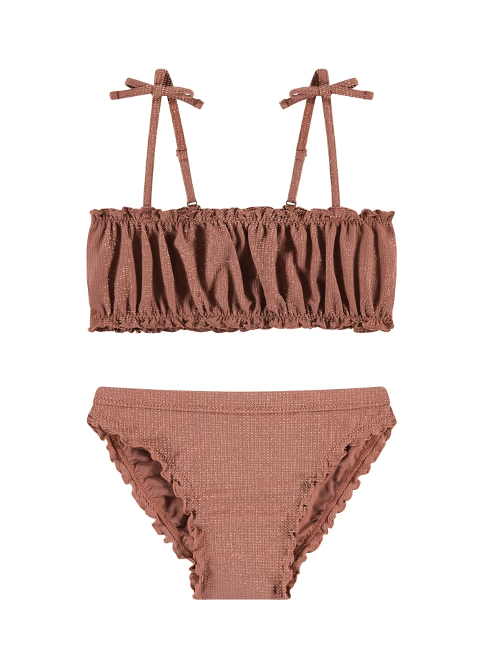 - Meisjes bikiniset met puffy bikinitop en bikinibroekje met ruches rondom te zoom
